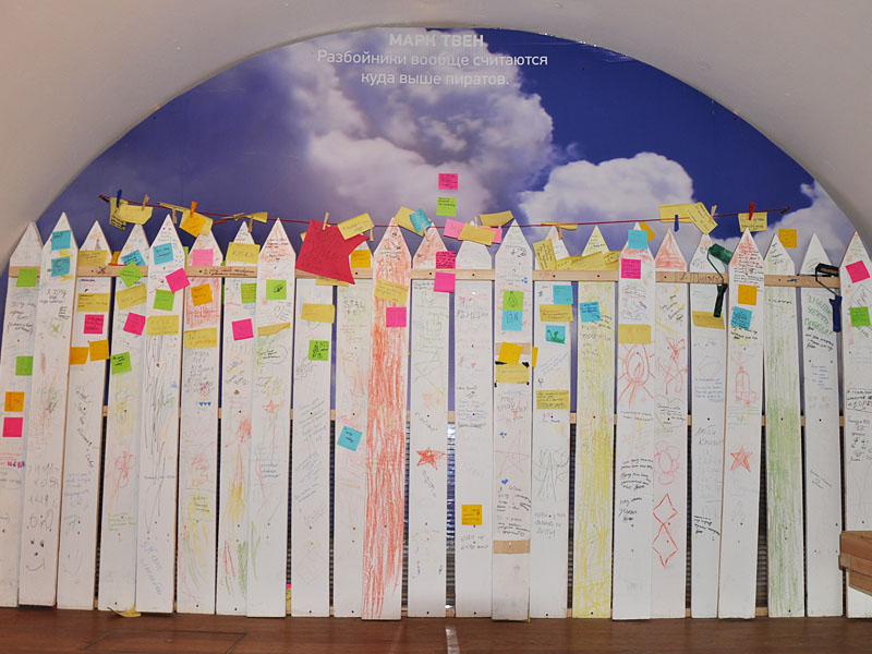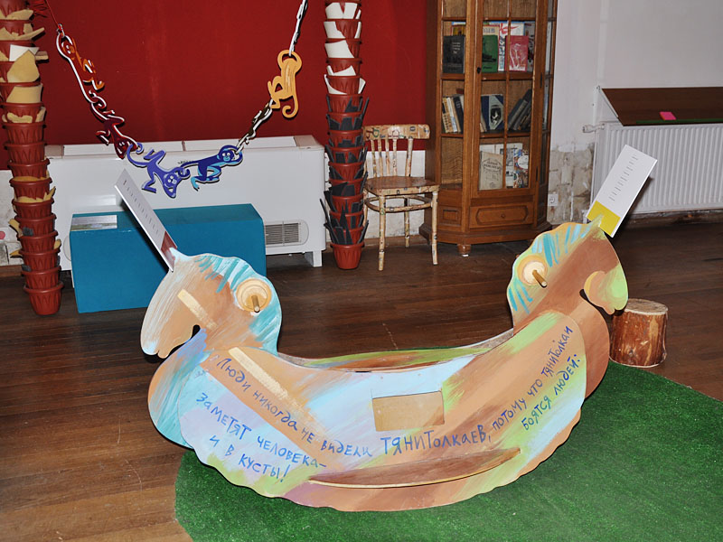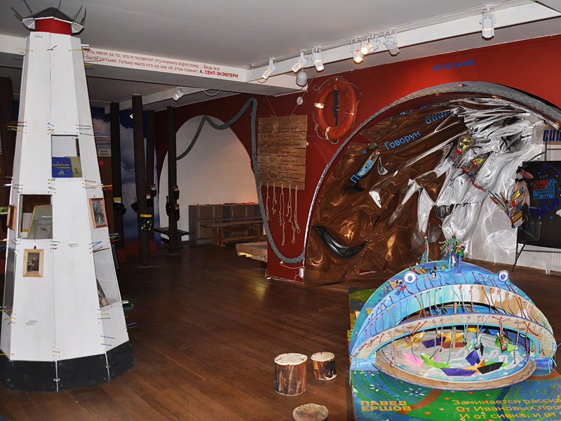 Длинные цитаты из литературных произведений – они не совсем для детей. Конечно, у ребенка должна быть возможность прочитать все, что он захочет. И чем больше будет разных текстов, тем больше у него возможностей. Но в основном тексты адресованы родителям. У нас ведь представлены любимые произведения старшего и среднего поколений. Родители уже не всегда их хорошо помнят – вот мы и даем возможность вспомнить и стать для своего ребенка «проводником» по экспозиции. А заодно и самому «сыграть» в столь любимые когда-то книги. (Ведь взрослым интерактивные формы взаимодействия с выставкой нужны не меньше, чем детям!)