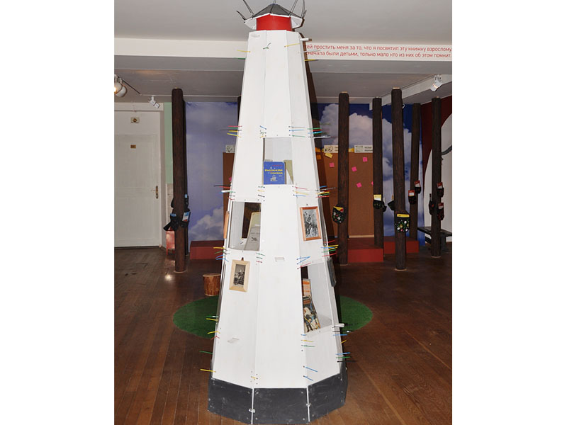 С этой общей концепцией связана и детская зона, где мы встречаем известные всем имена и книги, породившие свои собственные отдельные миры. В центре экспозиции находится маяк, который ориентирует нас в мире детской литературы: здесь выставлены издания, о которых мы говорим, причем старые, из фондов Литературного музея. И рядом ‒ фотографии детей-читателей разных времен. Детская зона поделена на тематические модули, посвященные конкретным книгам. В каждом из них разворачиваются свои истории.
