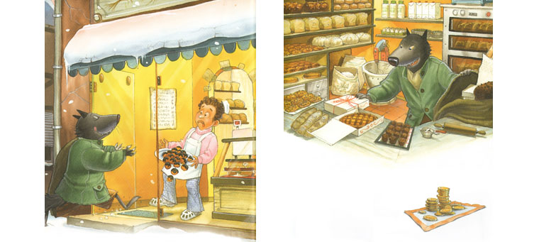 В конце концов, Волк натыкается на пекарню. Пекарь в страхе сбегает, а Волк набирает в мешок разных сладостей. Но даже и тут нельзя сказать, что он вступил на путь криминала, пускай и в облегченном варианте. «Я злой и страшный волк, но не вор и разбойник!» ‒ говорит он и оставляет на прилавке деньги за покупки.