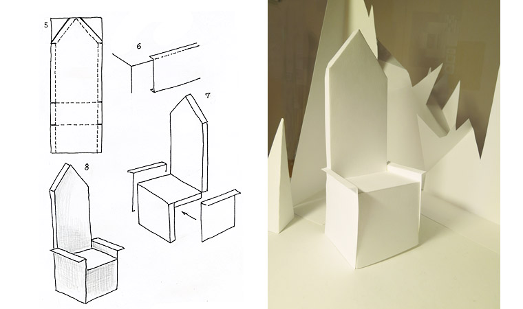 Учитывая ширину и высоту сиденья трона, вырежем два прямоугольника - боковины, отогнем края – подлокотники (рис.7).
