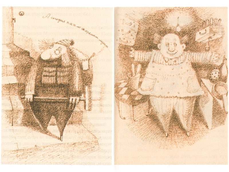 И вот здесь-то начинается самое странное и волнующее, побуждающее к размышлению... Говоря о повести, нельзя забыть об иллюстрациях, на которых в трогательной сепии оживает Мусорщик и медленно перебирается со страницы на страницу. Можно сказать, что эти рисунки – своего рода подсказка. Шепот художника на ухо читателю: «я догадался, а ты?»