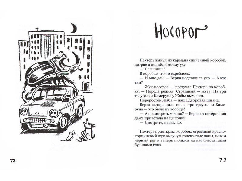 Сразу выяснилось, что на Бастиана из «Бесконечной истории» этот мальчик не похож. Он вопиюще счастлив, хотя жизнь его часто далеко не сахар. Одних страхов сколько! (Как в жизни любого ребенка с богатым воображением.) Со страхами рядом, как и полагается в детской книжке, ‒ способы их преодолеть: поменяться с друзьями кошмарами, например. Или вот еще заговор. О заговоре «от всего и от монстров» мы вместе и прочитали тем же вечером. А пока читали, до меня дошло, к чему эта толщина: да он попросту толстокожий, этот мальчик! Вот ключ к характеру – в первых строчках первого рассказа: «Просто бегемот какой-то! Слоник! Поросеночек!» Дело-то не в толщине, а в защитном механизме, в мировосприятии. Это истории в первую очередь о мощном детском (почти зверином) инстинкте самосохранения. Об умении ребенка ускользать, превращаться и превращать происходящее с ним в нечто совсем иное, неожиданное для окружающих, извлекать из ситуации совсем не то, что может быть взято по мнению взрослого.