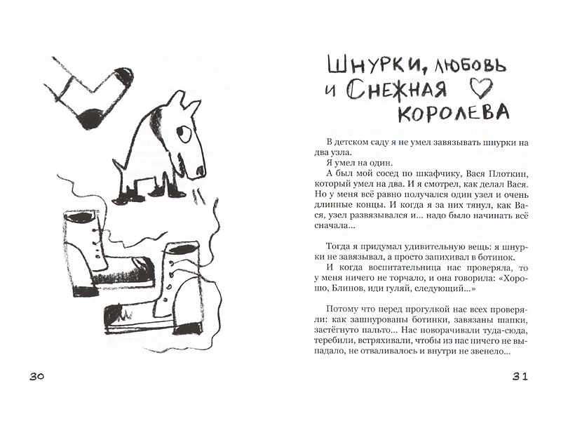 Вечером мы с ней вернулись к рассказам, только уже вдвоем. Тут-то и обнаружилась странная вещь: если читать их напрямую дочке, нет контакта. Переживает сильно, это видно, интересно ей, местами смеется, но в целом – неуютно. Дело даже не в том, что она ‒ «правильная Мальвиночка», а тут такой Буратино в центре кадра. («Денискины рассказы» у нас на ура шли.) Ей странно и неуютно его слушать. Как будто о жизни этого мальчика рассказывается слишком откровенно и такое, что то ли детям, то ли взрослым проговаривать друг другу «не полагается». Недаром жизнь детей в этой книжке отдельно от жизни взрослых.