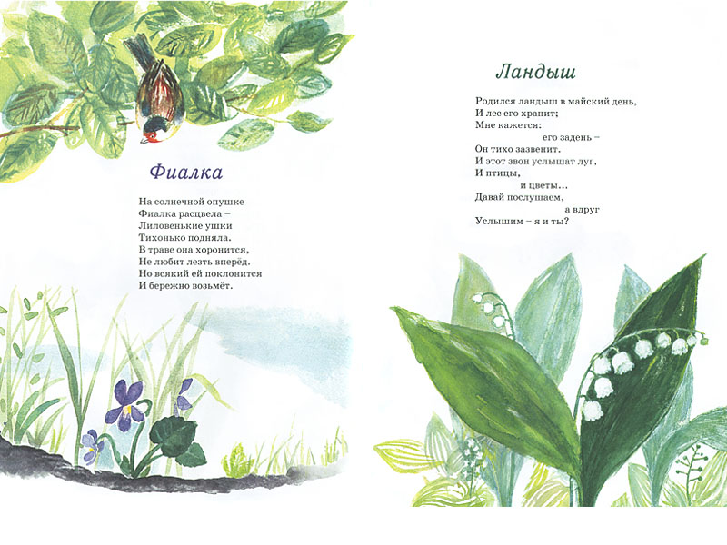 Обращает на себя внимание спокойная, деликатная интонация поэта в разговоре с маленьким читателем. Серова доверяет ребенку, его способности видеть и понимать красоту. К примеру, о ландыше она рассказывает так: «Мне кажется, его задень – он тихо зазвенит… Давай послушаем, а вдруг услышим – я и ты…»