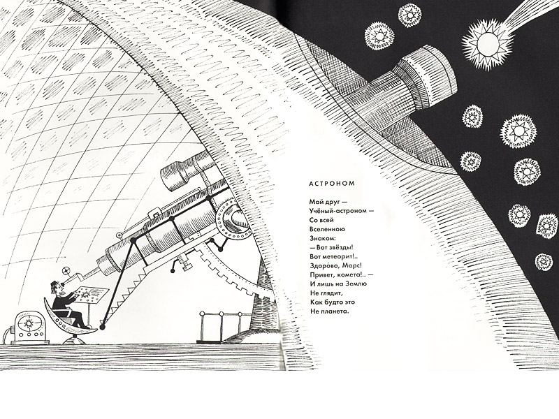 Оказалось, что с 1964 года в мальчишеских мечтах мало что изменилось, и Лева с восторгом читал на ракетах, взмывающих ввысь, о том, какой именно класс в них летит (там есть и первоклассники, и второклассники, разные), рассматривал довольные или удивленные рожицы детей и тоже мечтал быть школьником, летящим в ракете.
