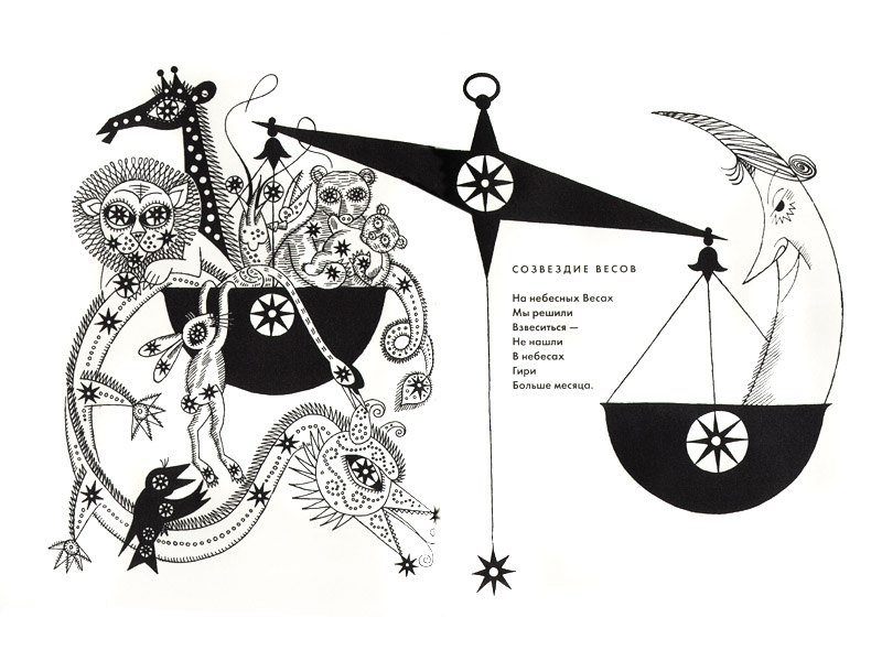 Дед Мороз обычно оставляет под елкой в нашем доме большущую стопку книг. Лева однажды даже спросил меня, могу ли я попросить Дед Мороза приносить поменьше книг. В этом году среди прочих книжных сокровищ он принес «Звездную карусель» Генриха Сапгира с иллюстрациями Виталия Стацинского. Из всех подаренных книг Лева выбрал ее для чтения самой первой – сыграла роль тема космоса, конечно. Я же в свое время выбрала ее из-за иллюстраций Стацинского, которого люблю с детства благодаря книге «Приключения Кубарика и Томатика, или Веселая математика». А придумал и написал эти математические сказочные приключения опять же Сапгир, так что это сложившийся дуэт.