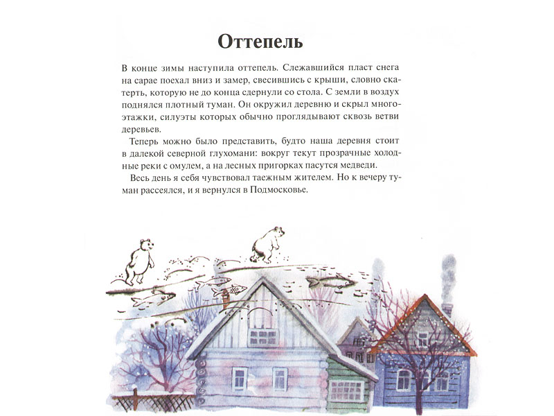 Мне было интересно разобраться, чем эта книга могла понравиться ребенку. По словам Федора, сюжетными историями хорошо «развлекать бабушек», зато рассказы без сюжета «похожи на правду», часто совпадают с его собственным опытом наблюдений и переживаний. И только кажется, что в них ничего не происходит, – для ребенка они наполнены событиями. А деревня как деревня, она здесь вообще не причем…