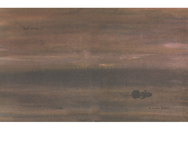 И тут мы подходим к кульминации, сбивающей ритм: «В стране за далекими горами один мальчик упал и больше не встал». Чей-то комментарий вполголоса: «Он сдох!» Кто-то из детей притихает, кто-то наоборот, бурно смеется: ведь вот он, долгожданный экшен, хоть какое-то событие. Но сразу после этого книга возвращается к своему монотонному ритму: «Дует ветер. – Дует ветер. А в это время... – Дул ветер...».