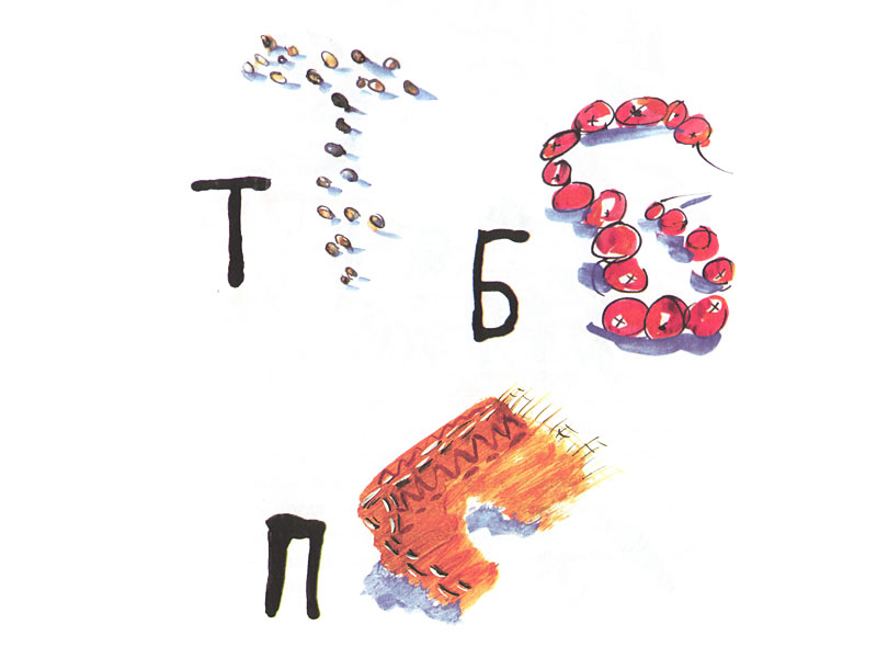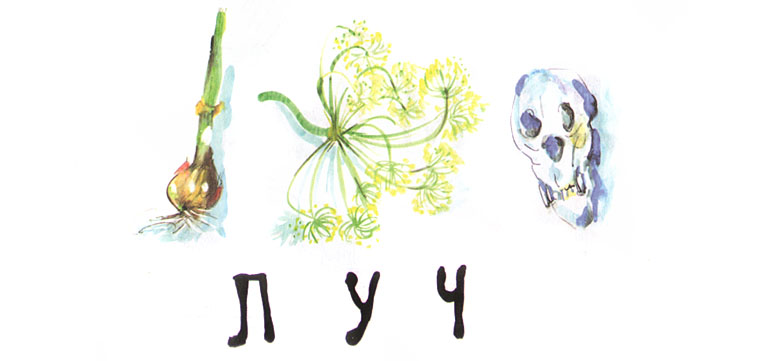 Мои первоклассники с восторгом приняли эту «игру», но их смущало, что связи между предметом и звуком часто бывают случайными: почему звук «Ч» – это обязательно волчий череп?.. Как бы там ни было, дети уловили главное: предмет может стать обозначением звука! И когда Аяэль догадался сложить из этих знаков слово «ЛУЧ», они радовались так, как будто сами совершили удивительное открытие.