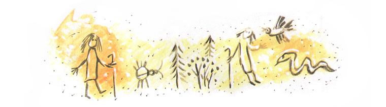 Впереди была встреча Аяэля с Глазастиком. Глазастик – это большеглазый мальчишка, который убежал от скукотцев (кто они такие – пока неясно) и теперь живет в лесу, на дереве. Его приютила Серая Сойка после того, как он спас ее птенцов.