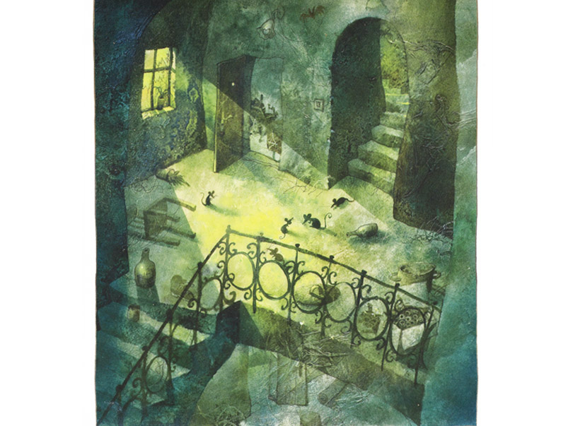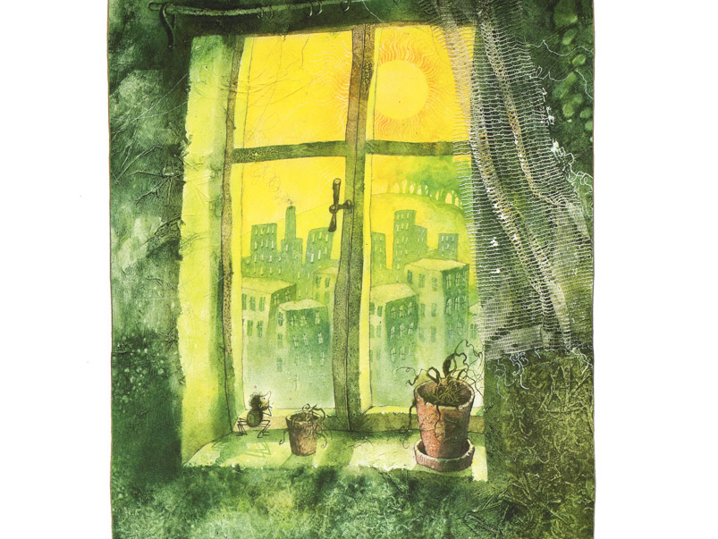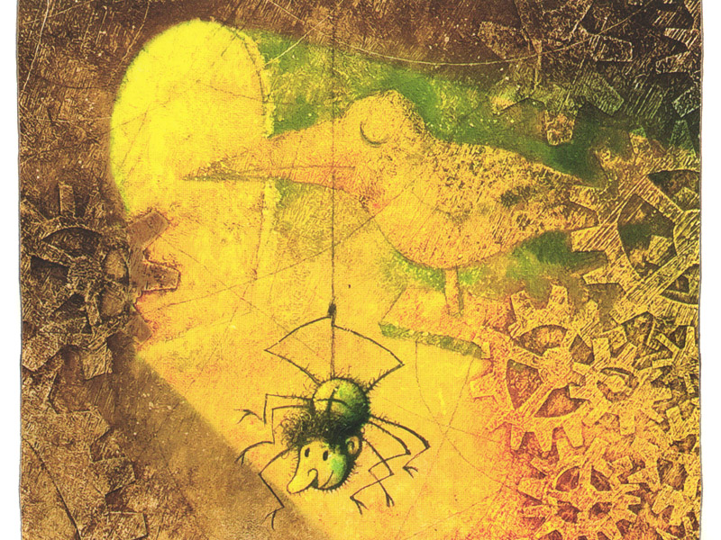 История старых часов, в которых живут паучок и кукушка, разворачивается в старом опустевшем доме на окраине города. В конце книги дом разрушают: мы застаем последние годы его существования. Рисунки Чеха завораживают ребенка: их можно долго-долго рассматривать, реконструируя «бывшую» жизнь обитателей дома, исследуя, куда ведут лестницы, нарисованные словно по законам Макса Эшера. Поэзия заброшенности, покинутости, разрушения вряд ли была бы так притягательна для ребенка-дошкольника без этих рисунков.