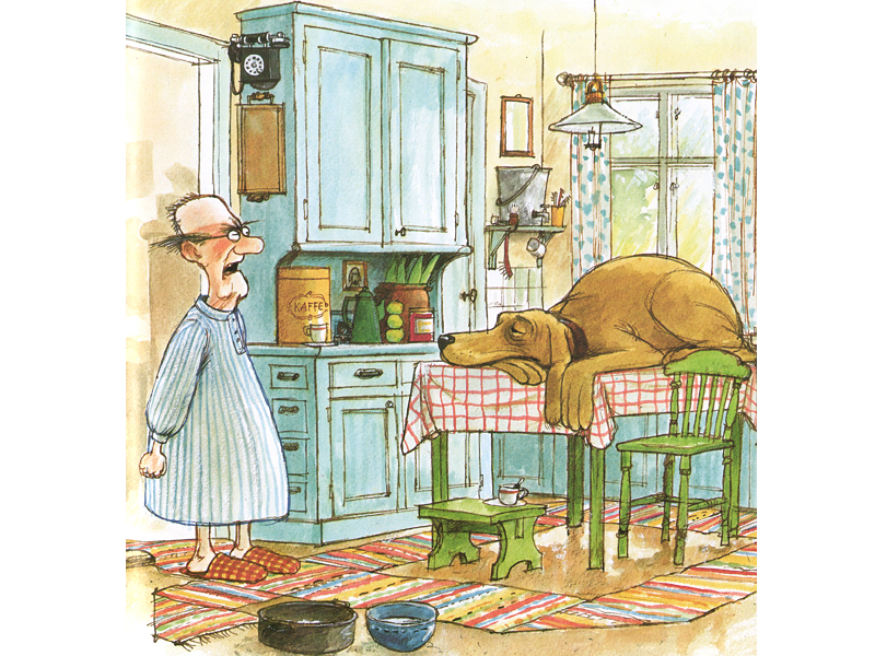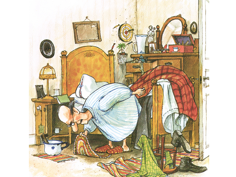А дедушка тем временем находит разные вещи: оловянного солдатика, цепочку от часов, перочинный нож, магнит и свисток. И там, в чистом поле, в кадре от Соррентино, он достает найденные вещицы и вспоминает. Вспоминает себя семилетнего, когда его приятель Оке показал ему ежика в ящике. И дедушка, а тогда еще семилетний мальчик, предложил за ежика все свои сокровища. Всё, что у него было: оловянного солдатика, цепочку от часов, перочинный нож, магнит и свисток… Дочитав до этого места, я обмерла. А детям-то хоть бы хны! Читай, мама, дальше! А Нурдквист добавляет загадочности, переплетая настоящее с прошлым, называя семилетнего мальчика дедушкой: