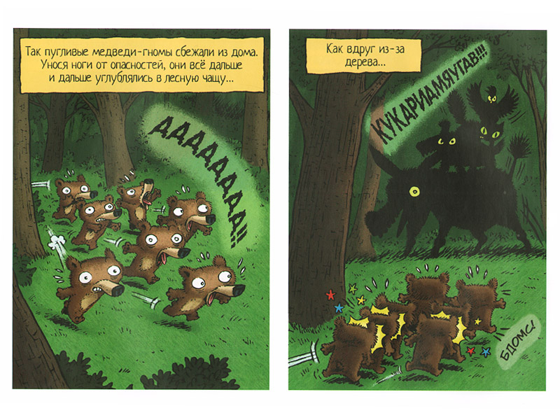 – Книжка о Медведях-гномах несет некоторую образовательную функцию, то есть ребенок должен хорошо знать сказки, на основе которых создана история. Думали ли вы, когда рисовали книжку, еще и научить детей чему-то?