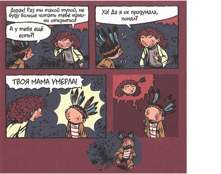 – Насколько я знаю, его читают с 8 лет. Все дети эту историю осознают немножко по-разному: кто-то сразу понимает, что мама умерла, а кто-то наоборот, даже после прочтения книги продолжает считать, что мама где-то ездит и действительно отправляет эти открытки. Но для большинства детей это позитивная история, не грустная. На самом деле она о том, что взрослые ставят стену между собой и ребенком, скрывая от него правду. И ребенку приходится взрослеть на домыслах и лжи. Очень важно, что не взрослый сообщил Жану, что его мама мертва, а соседская девочка. Да, она писала эти открытки, потому что она умеет писать. И еще эта история о том, что если ты умеешь читать и писать, то обладаешь силой. О том, что ты по-разному воспринимаешь жизнь, если умеешь читать или если не умеешь читать.