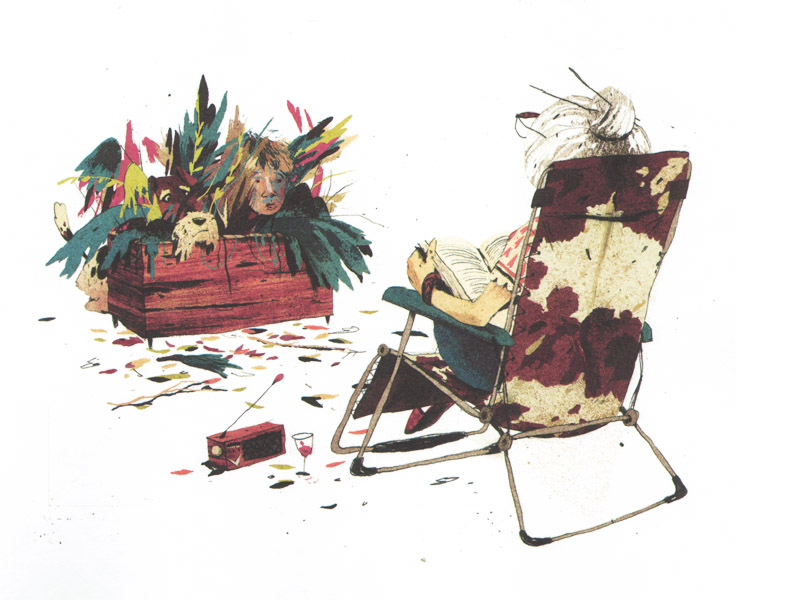 Но эта страна все-таки плохо представима: что там растет? Какое там небо? Какого цвета земля? Есть ли там люди, дома? Нино, по-видимому, этого не знает. Вокруг папы множество розовых птиц. Они куда-то двигаются – бегут, летят, хлопают крыльями. Наверно, они красивые. Наверно, об этих птицах Нино рассказывал папа – поэтому птицы такие крупные, такие яркие, розовые… Но не очень понятно, есть ли им дело до папы. А папа… Он говорит по телефону с Нино? Или с кем-то другим, по рации? С папой что-то случилось? Или он просто рассказывает про птиц? Ясно только одно: папы нет рядом с Нино.
