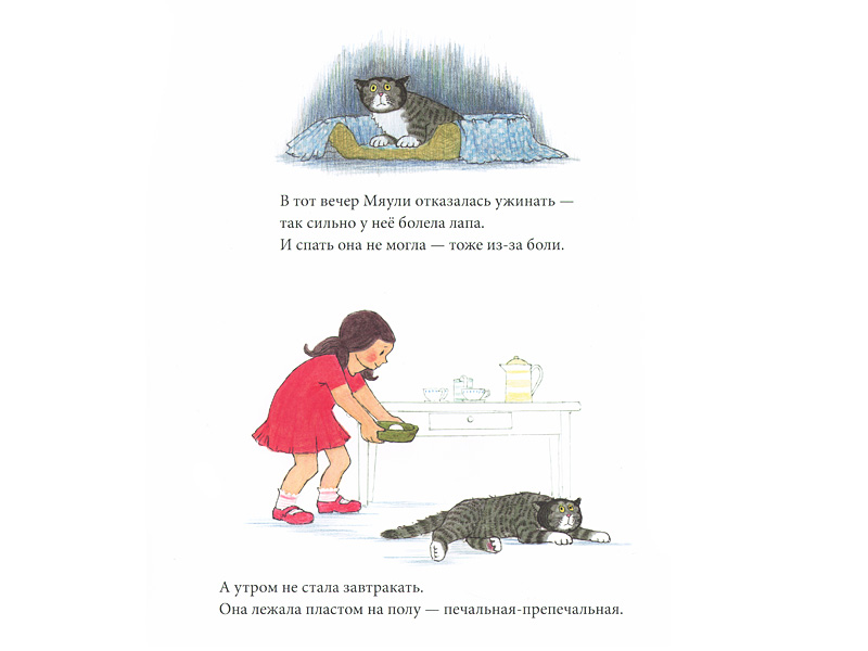 Но как расскажешь иллюстрации двухлетнему малышу? Как связать нежелание Мяули вылезать из корзинки с решением ветеринара о том, чтобы ее вытряхнуть, а это решение – с просьбой показать больную лапку?