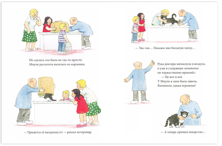 Например, в книжке «Мяули у ветеринара» есть сложный для рассказчика момент: