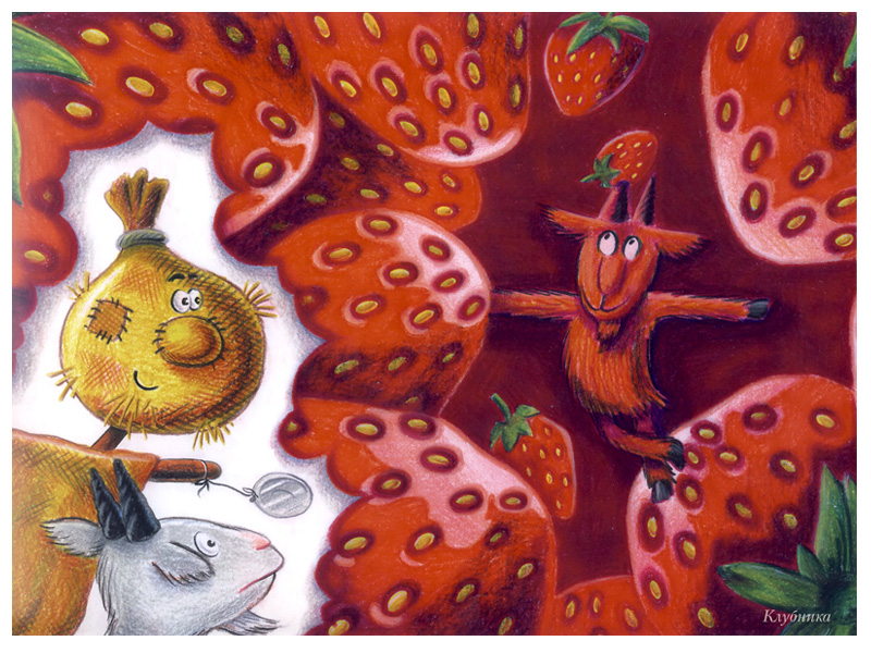 Мы читали и нюхали дальше. Нюхал вместе с нами и козлик, и его все время что-то не устраивало. От клубники его отговорило пугало, чтобы козлик не был слишком приторным, до яблок козлик не допрыгнул, запах меда жалился, мы спорили…