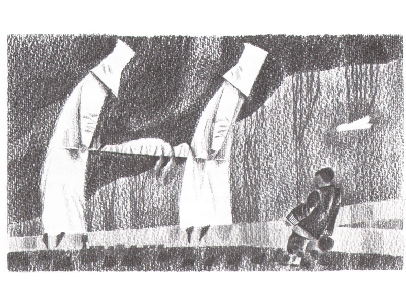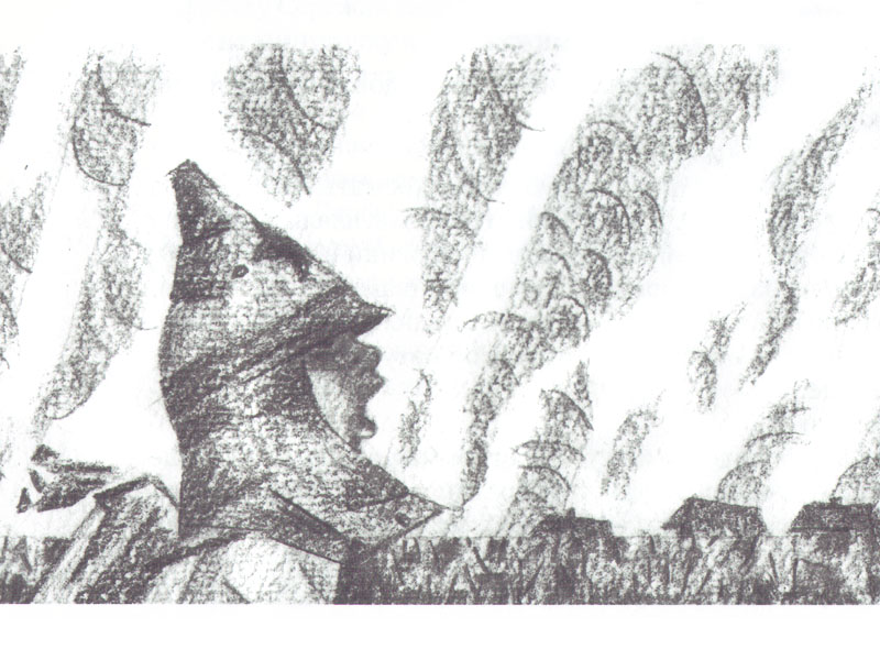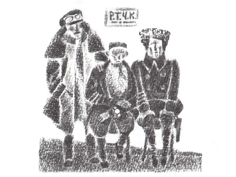 В тексте бросается в глаза обилие диалогической прямой речи, большую часть которой составляют брошенные персонажами друг другу обрывки фраз, вскрики окружающих. Люди в повести в основном кричат: пытаясь пробиться в уходящий поезд, пытаясь продать свой товар, предупреждая кого-либо, или же просто от горя и безысходности. (Возможно, отсюда у художника и возникла ассоциация с картиной Мунка.) Герой спасается от голода, бежит от смерти (даже так – Смерти, с большой буквы), но она всё равно преследует его всю дорогу, забирая жизни его попутчиков. И даже когда Мишка возвращается домой, он застаёт лишь опустошение и ту же смерть.