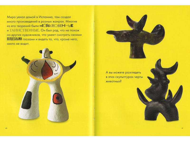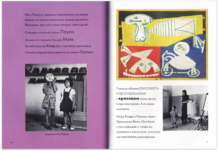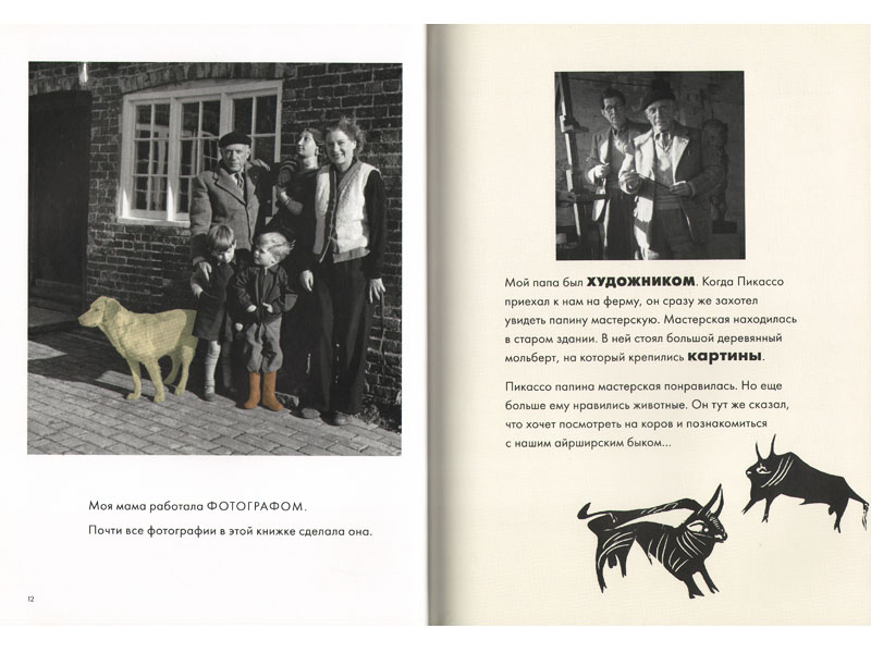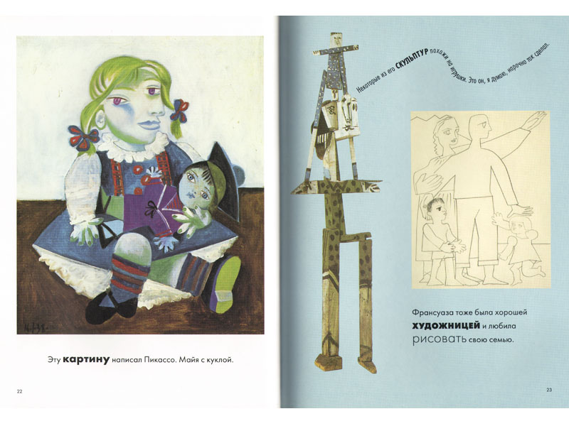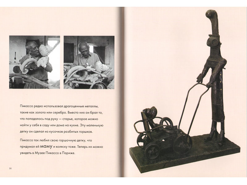 В книге о Пикассо много фотографий именно со скульптурами. Там читатель-ребенок может наглядно проследить трансформации реальности, ее претворение в новую форму.