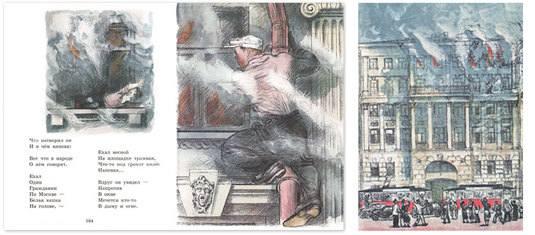 У Феди другой подход к чтению. Он слушает внимательно, но часто перебивает вопросами. «А милиция – это что? Почему дяди не нашли девочку в доме? А что такое ГТО?» На иллюстрации Федя обращает особое внимание. Всех юношей, нарисованных художником Пахомовым, Федя наделил характерами и даже именами. На картинке с домом, в котором случился пожар, Федя скрупулезно отслеживает героический путь парня в белой футболке и кепке: вот карниз, по которому он лез; вот тут он взял девочку и начал спускаться вниз. А это балкон, на который неизвестный герой забрался с ребенком на руках, а затем исчез в квартире.