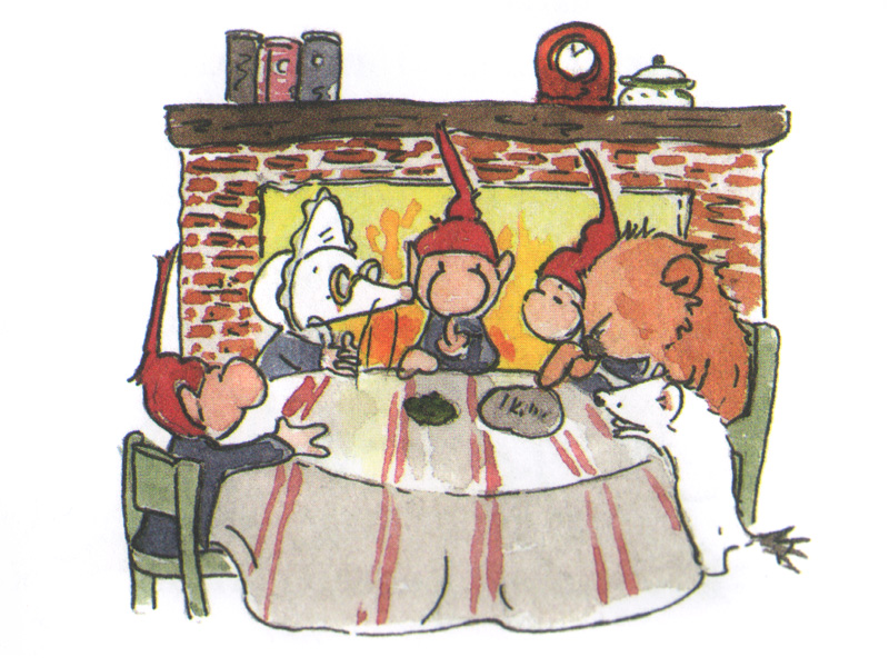 Вторым удивлением для меня стала структура самого текста. Мы с Митей уже прочли первые три главы истории, но ничего головокружительного пока так и не случилось. Снофрид только спас (совершенно случайно) эльфа, придавленного поленом, и потому был избран в потенциальные спасители эльфийской принцессы. Дальше текст тоже разворачивался чрезвычайно медленно. Каждая глава имела очень длинное название в духе средневековых рукописных фолиантов, и отнюдь не в каждой происходило какое-то событие ‒ что первое время меня чрезвычайно раздражало. Раз уж сказка с приключениями, они должны разворачиваться стремительно, с неожиданными поворотами сюжета. Но мои мальчишки довольно быстро поняли, что это не совсем приключенческий текст. Это вообще не книжка действие, а книжка состояние. Переживания героя, созерцание им окружающего мира, его мысли в разных обстоятельствах – вот настоящая канва путешествия, а вовсе не внешние события. Именно эта особенность притягивала Митино внимание к тексту. Они очень подходили друг другу – маленький созерцатель и долгая, неторопливая, местами даже густая и тягучая, как овсяная каша, сказка. Я тогда еще подумала: видимо, совершенно не случайно любимым и практически единственным блюдом в меню Снофрида была именно овсянка.