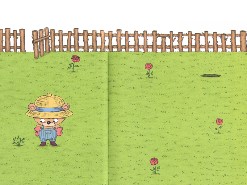 Медвежонок демонстрирует определенные знания по уходу за растениями: растению нужен полив, свет, нужно убирать с земли опавшие листья, прикрывать растение от прямых солнечных лучей. Кроме того, медвежонок поливает растение чаем. Тут ребенок может рассмеяться. Но вообще-то чай считается высоко эффективным удобрением, так что полив чаем вписывается в грамотный подход к растениеводству. Правда, на следующей странице медвежонок «сдает позиции»: предполагает, что куст не очень любит чай – и поэтому не цветет. «Может, ему больше понравится какао?» Вот тут надо смеяться. Наверное, придется помочь ребенку сориентироваться в реакциях. Потому что ребенку, конечно, хочется смеяться над каждым действием медвежонка – даже тогда, когда тот, вроде бы, все делает правильно.