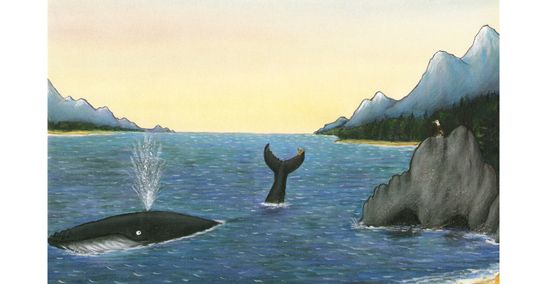 Возможно, начинать надо было не с «Груффало», не знаю. Потому что вдруг оказалось, что Дональдсон отлично ставить в нашем домашнем театрике! Начали мы с «Улитки и Кита». Например, вот Улитка плывет верхом на Ките: