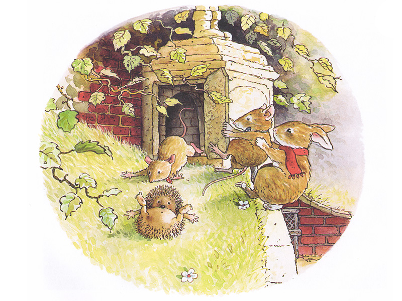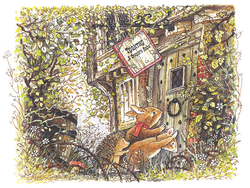 Честно говоря, это оказалось не так-то просто. Нет, конечно, у нас с Матвеем выстроилась вполне логичная история: Ежик идет с друзьями в гости, потом заглядывает в библиотеку, потом находит старый дом, падает (очень много смеха вызвала именно та картинка!), а потом все снова идут в гости…