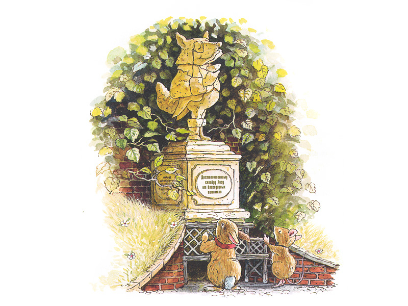При рассматривании нами был найден и ответ на вопрос, почему лес был назван Лисьим. На одной из картинок изображен памятник Лису. Так что все объясняется просто: