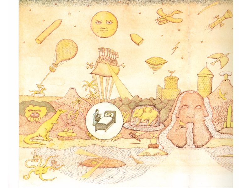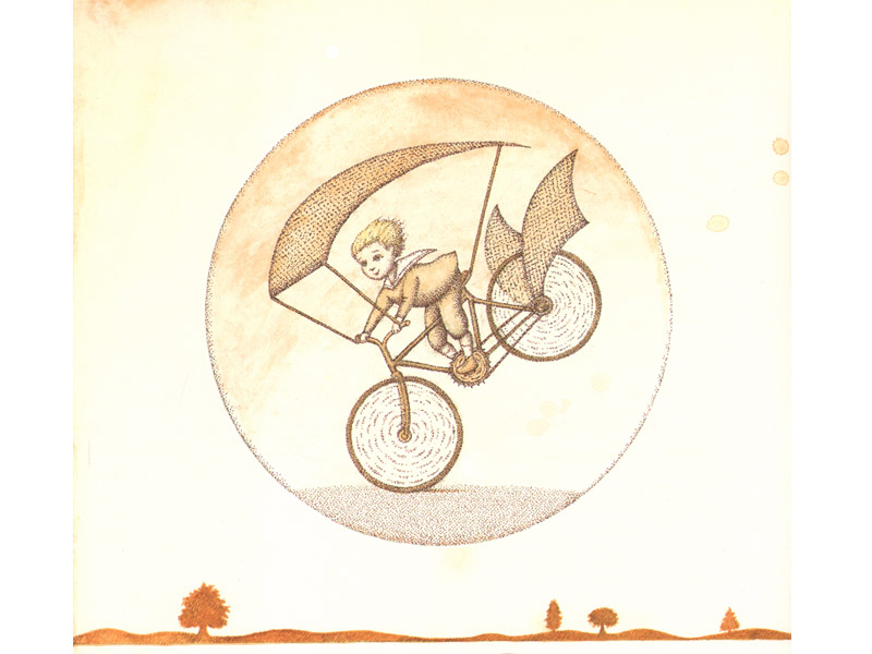 Недавно мы с сыном играли в привидения (в темноте, конечно). Посреди игры он вдруг принес эту книжку и принялся водить по страницам фонариком: «Смотри. Летать научился». (Это о младенце с крылышками в самом начале.) Следующий разворот: «Смотри, что он любил». – «Что?» – «Всякие летающие штуки. Тут летающий паук, летающая подводная лодка, летающий дом… А вот девочка-привидение», – это уже о силуэте старшей сестры Сент-Экзюпери на другой странице.