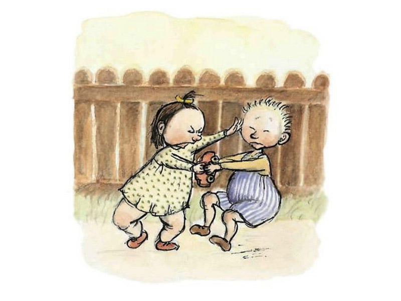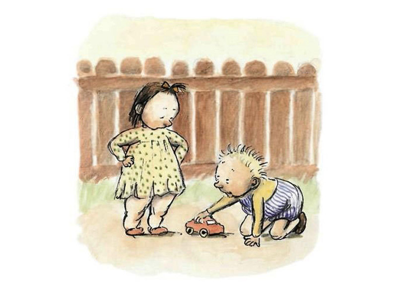 Книжка «Макс и машинка» была у нас давно. И как-то между делом я решила показать ее полуторагодовалой дочке. Наверное, не будет открытием, что книжка про двухлетку идеально подходит тем, кому сейчас вокруг двух. Но для меня это было маленькое чудо – мы просмотрели (внимательно!) каждую страницу. Потому что текста там очень мало, но он важен и понятен тому, кто сам только недавно начал понимать, что говорят вокруг. И главное, в книжке есть понятный и захватывающий внимание любого малыша сюжет: завязка – мальчик нашел машинку, нарастание проблемы – пришла девочка, которой эта машинка тоже интересна. Но машинка одна, двое не могут играть в нее. Они даже не могут объяснить друг другу, что им надо. Конфликт – Лиза отбирает машинку, Макс не хочет ее отдавать. Лиза бьет Макса, Макс бьет Лизу в ответ. Здесь уже полная трагедия – все ревут, а машинка валяется в стороне. И вот развязка – появляется мама-спаситель и дает другую машинку. Не Максу или Лизе, потому что она и не видела, наверно, кто первым нашел машинку или кто кого ударил. Она просто протягивает вторую, чтобы наконец могла начаться игра. И дальше счастье – машинки при деле, дети рады.