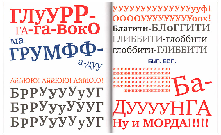 И так на протяжении всей книги. Внезапные «ГЛУРР-ГАГА-ВОКО!», «БИП-БОП» и «БУДУНГА!», за которыми следует взрыв смеха.