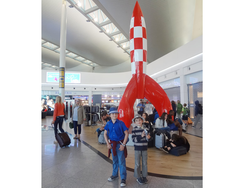 Главный аэропорт Брюсселя, «столицы» объединенной Европы, встречает своих гостей странной штуковиной, вроде ракеты, установленной в самом центре здания, где пересекаются все пассажирские потоки. Если бы я путешествовала без детей, я просто прошла бы мимо, сочтя это очередной назойливой рекламой непонятно чего. Лично мне этот предмет ничего не говорит. Но дети наперегонки бросились к нему: «Мама, это же ракета Тинтина!!!»