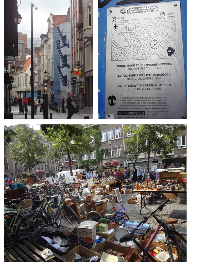 Ни в одном комиксе Эрже напрямую не пишет о Брюсселе – по крайней мере, так сообщили мне главные эксперты по Тинтину в нашем путешествии, мои сыновья 8 и 10 лет. Но они же заметили: многие городские постройки неуловимо напоминают те, что нарисованы в комиксах. Театры, королевские дворцы, биржи, музеи, жилые дома, парки – мы гуляли, разглядывая все это, и мальчики все время вспоминали то один, то другой комикс. Особенно запомнился им один из уличных «блошиных» рынков, где продавали всякую рухлядь – ведь именно там Тинтин купил модель таинственного «Единорога»!