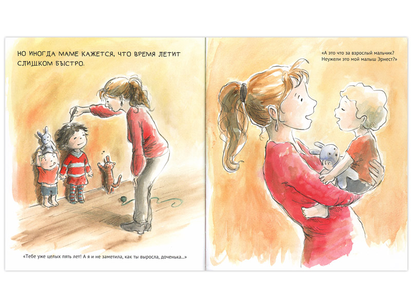 Главное в книге – способность мамы «останавливать время», находить способ «увидеть» своих детей, удивиться им, побыть вместе с ними и ради них, поиграть, вместе пережить какие-то замечательные события. И это «волшебное» умение мамы, эта ее трансформация невероятно радует ребенка, слушающего книгу. Это то, о чем он мечтает. Ему так важно, чтобы мама к нему «возвращалась»! И в книге показано, как это бывает, как это должно быть – когда можно разделить с мамой все, что видишь и чувствуешь. Когда мама на это настроена, когда мама существует только ради тебя и для тебя.