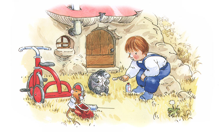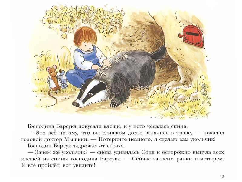 Кто не знает особенной страсти дошкольника к деланию уколов? В любой игре на медицинскую тему укол – обязательная процедура, спасающая решительно от любой болезни. Вот и доктор Мышкин с удовольствием готовит шприц всякий раз, когда кто нибудь зовет его на помощь. Заноза, простуда и укусы клещей