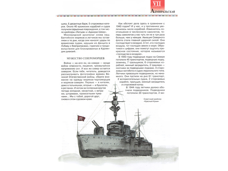 Эта книга написана простым понятным языком, в ней множество иллюстраций, фотографий судов, портретов флотоводцев, карт морских баталий. Анатолий Митяев постоянно ведёт диалог с читателем, напрямую обращается к нему – и мне было очень приятно «разговаривать» с таким знающим специалистом.
