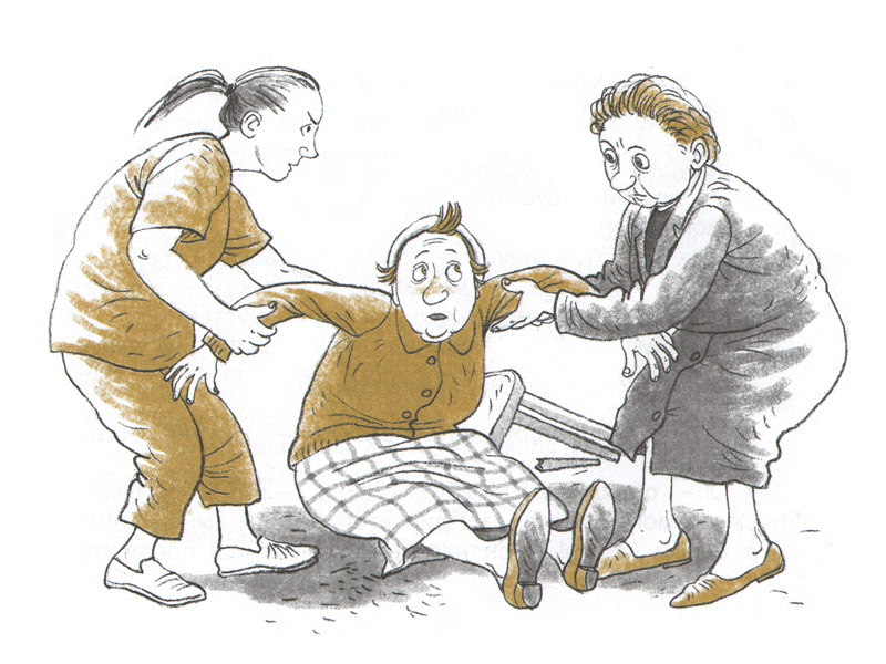 Но в «доме П» все оказалось не так хорошо, как описывал Миша. В его санатории были плохие стулья, и с одного из них упала бабушка Женя. Вечером в коридоре не горел свет, и подруга бабушки Жени наткнулась на стул и упала. Медсестра делала уколы очень больно. На окнах были решетки. Цветы кругом были искусственные. Телевизор в холле не работал. И все были очень грустные и унылые. Даже новую подругу бабушки Жени звали Унылая Лида.