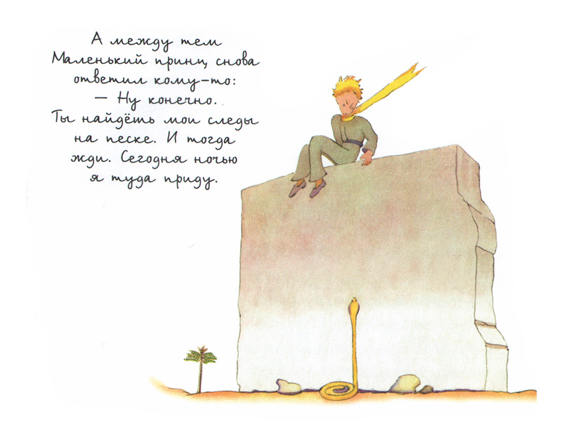 А мне все же удалось еще раз повстречаться с удавом, проглотившем слона, – с посланием Сент-Экзюпери, которое нельзя описать, но можно нарисовать. Когда мы дочитали до момента, где маленькая желтая змейка жалит Маленького принца, я обнаружила своего ребенка, с головой накрывшегося одеялом. Потому что есть вещи, которые нужно переживать вместе, и вещи, которые переживаются только в одиночестве. Особенно, если ты еще маленький, а вокруг – необжитая пустыня.