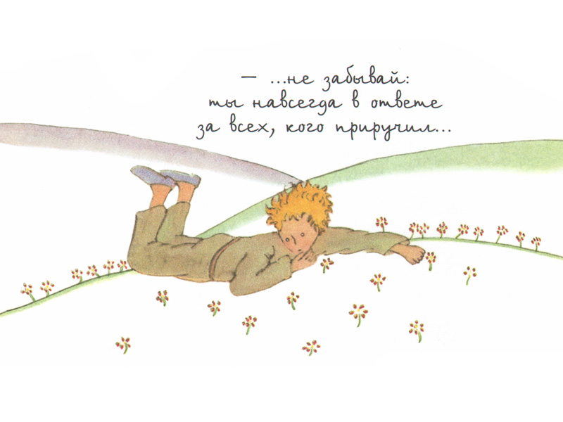 А когда мы вместе читаем «Маленького принца», мы не расходимся, а наоборот, объединяемся. Ведь некоторые слова необходимо пережить вместе. И пусть это будет банальное «Мы в ответе за тех, кого приручили», но это – территория одновременного переживания, переживания, которое длится, пока звучит слово, и это чрезвычайно важный момент в истории ребенка.