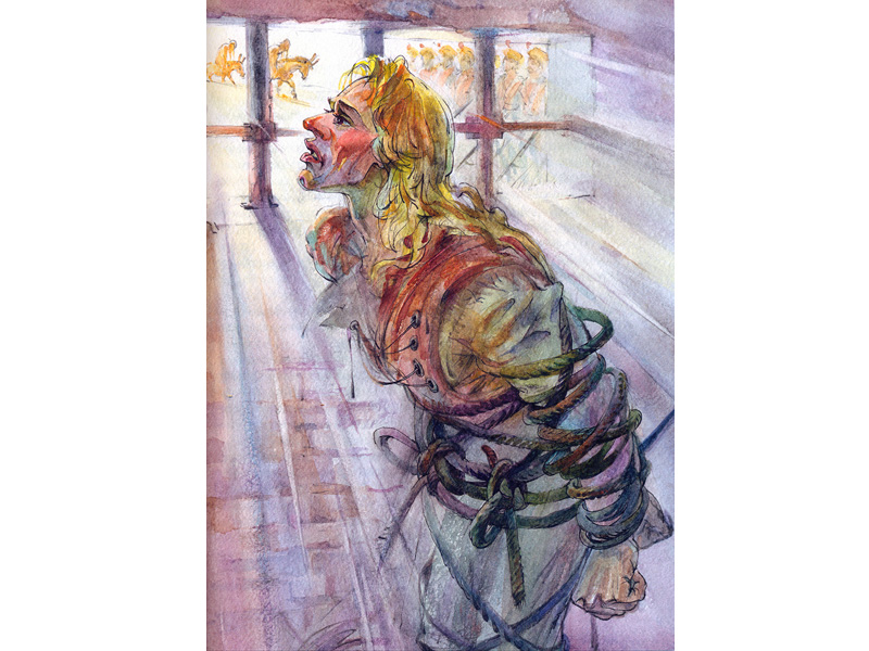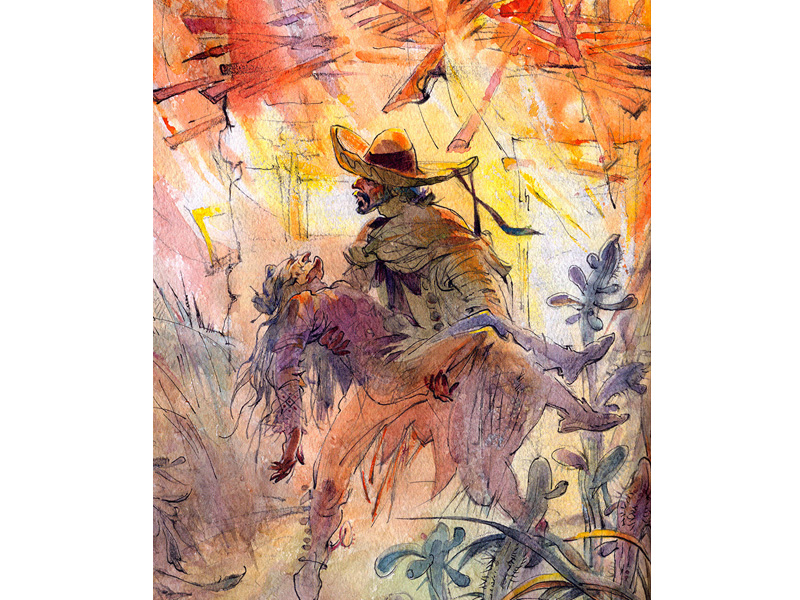 Этот живой мир дополняется великолепными иллюстрациями Юрия Богачёва. Задний план на них едва обозначен, словно скрыт дымкой. С ним резко контрастирует передний план ‒ яркий, чётко очерченный и детализированный. Положенные близко друг к другу мазки разных оттенков отлично передают блики и цветовые переходы на неровных поверхностях. Особенно удались художнику, на мой взгляд, человеческие лица – тонко выведенные и эмоционально очень выразительные. И еще одна привлекательная деталь оформления – это рельефный рисунок на обложке. Каждый раз открывая и закрывая книгу, просто невозможно не погладить её, не провести рукой по углублениям в плотном картоне.
