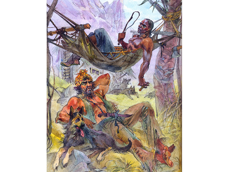 Интересно, что противостояние между Карлосом и офицерами – это, во многом, поединок умов. Конечно, иной раз дело доходит и до погонь, стычек и перестрелок, и всё же обеим сторонам в первую очередь приходится решать непростые задачи: офицерам – как окружить охотника, а охотнику – как не попасться в их западню. Карлос, несмотря на всю свою силу и сноровку, не способен долго противостоять большому отряду солдат, они легко могут окружить его. Но у охотника есть конь – лучший скакун в окру́ге, и если Карлосу удалось сесть в седло, его уже не догнать. Вот и выходит, что противникам приходится тщательно продумывать каждый свой шаг и предугадывать действия друг друга. Ход мыслей и офицеров, и Карлоса описан во всех подробностях, показаны рассуждения и решения, стоящие за их поступками, и это добавляет роману глубины и остроты. Сцены, которые иначе были бы короткими и скучными, становятся напряжёнными и увлекательными. Например, небольшой и простой, по сути, эпизод, где Карлос пытается выбраться из окружения солдат, растягивается на несколько страниц. На их протяжении охотник, находясь в отчаянном положении, прямо на ходу продумывает план прорыва и за считанные секунды принимает решение, спасающее ему жизнь. Да и вообще приятно, когда удачи и неудачи героев зависят не только от случая или каких-то физических качеств, но от хитрости и смекалки.
