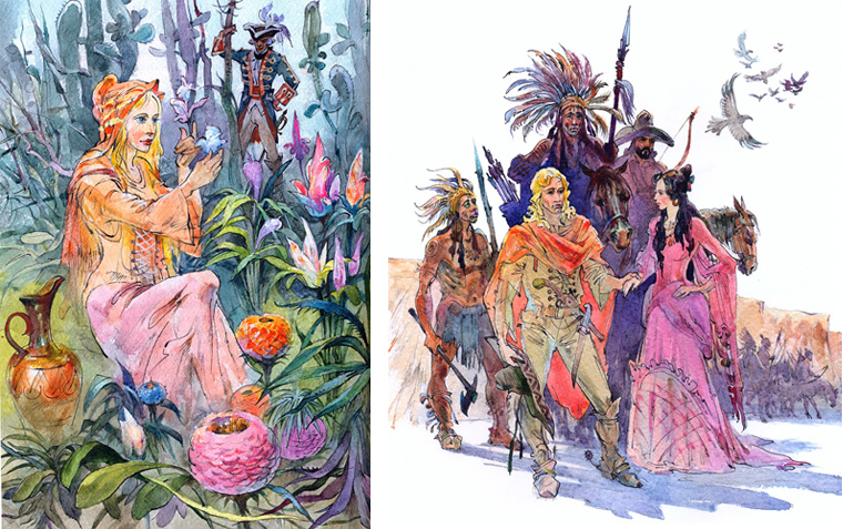 Почти все события, описанные в этой книге, происходят в Мексике, в тихой долине Сан Ильдефонсо. В ней расположен город, населённый в основном потомками испанских переселенцев, да несколько ранчо и особняков, разбросанных по равнине среди скал и рощиц. Жизнь в долине течёт мирно и спокойно. Все окрестные индейские племена уже давно заключили с городом мир, а если кто-то вдруг и посмеет напасть, жителей Сан Ильдефонсо защитит размещённый в городской крепости гарнизон. И если бы не произошло несколько, на первый взгляд, незначительных событий, все основные персонажи, вполне возможно, прожили бы долгую и благополучную жизнь. Но тут, увы, в городке образуются два любовных треугольника, на которых и строится весь конфликт книги.