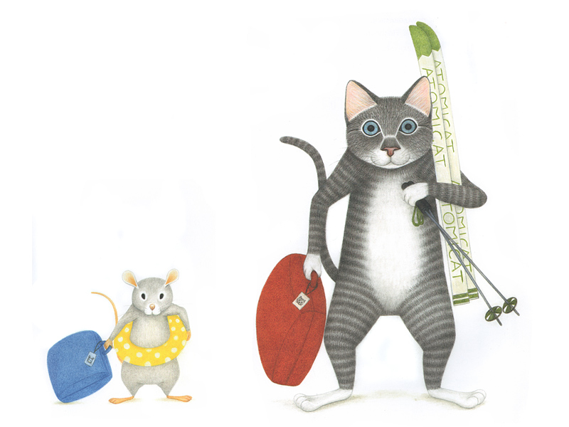 – Мышь хочет поехать на море, а Кот – в горы! Смотри, они уже подружились и хотят поехать вместе! Как думаешь, куда?