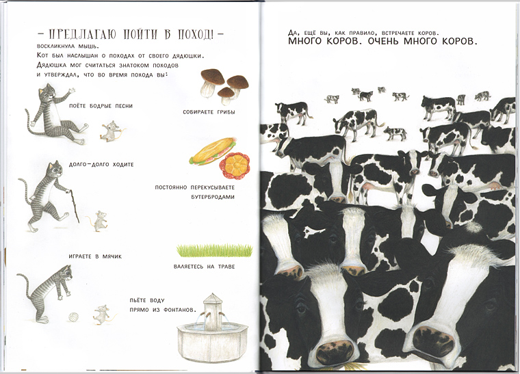 В общем, к концу путешествия Кот и Мышь поняли, что в отдыхе совсем не важно, что ты там себе заранее запланировал и насобирал в дорогу. Главное – хорошая компания! А мы с Матвеем к концу книги перестали искать смысл и мораль, и просто наслаждались великолепными иллюстрациями и незатейливым добрым сюжетом. Благо, и то и другое дало нам огромный простор для фантазии