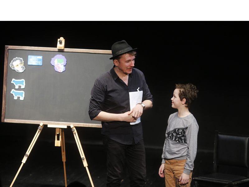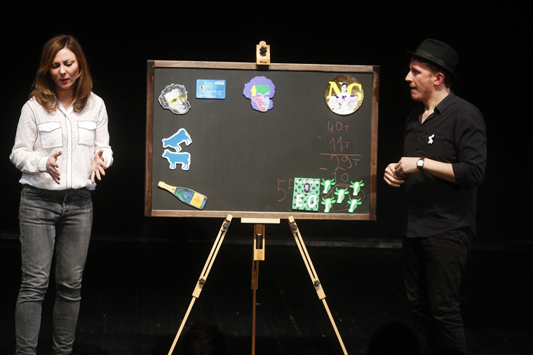 И так они весь спектакль разговаривают друг с другом и между делом общаются со зрителями, втягивают их в свои арифметические подсчеты.