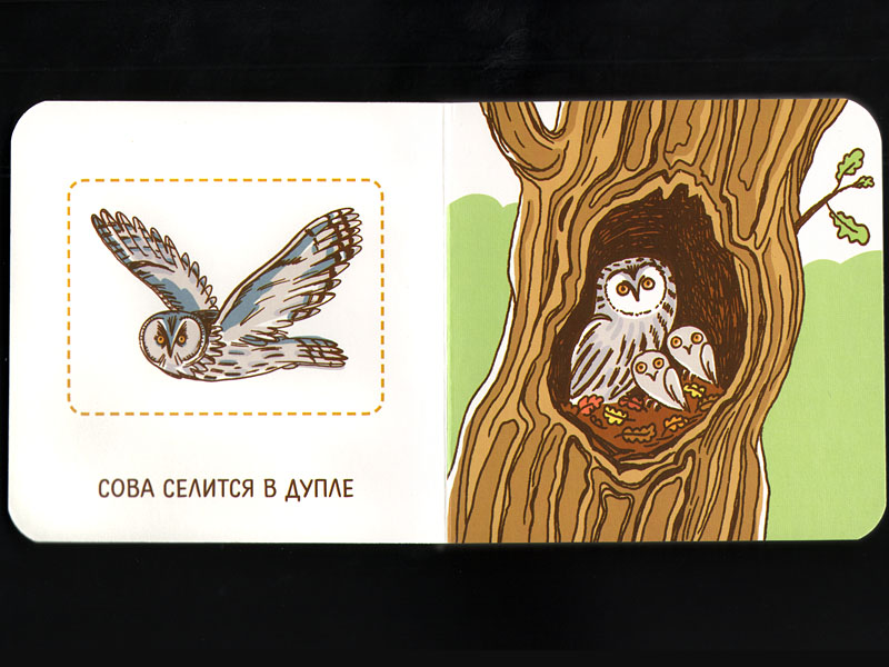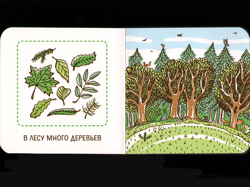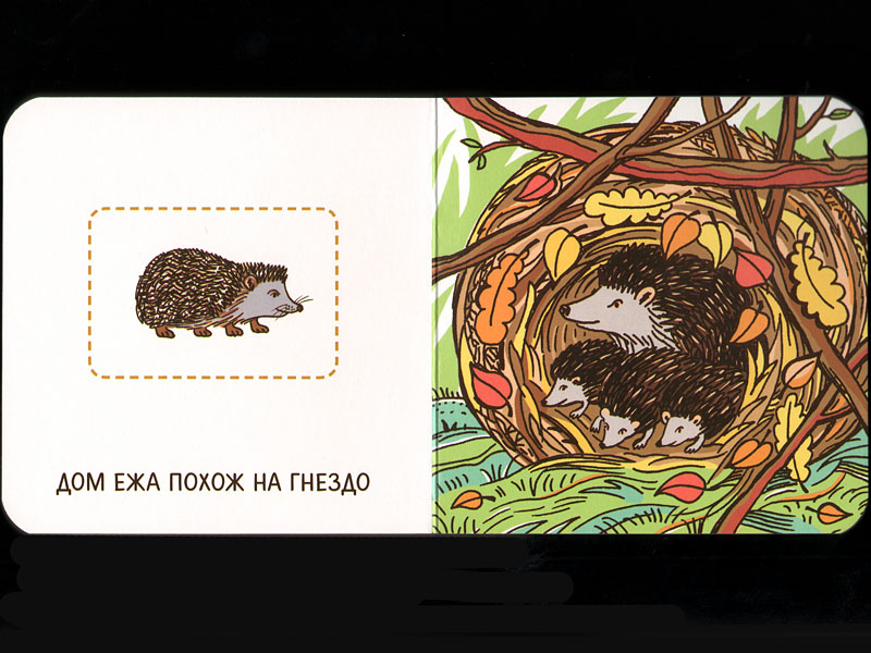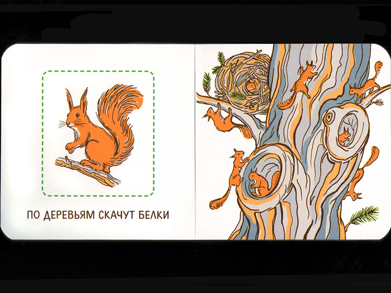 На каждом развороте справа – сюжетная картинка, а слева – отдельно взятый предмет или животное.