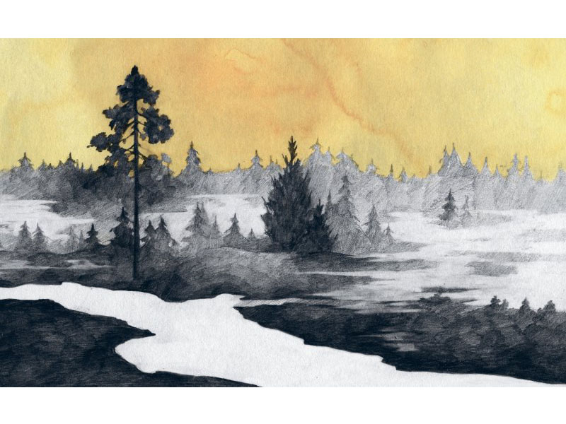 Но сборник «Рыжие леса» ‒ это не только стихотворения Николая Голышева, это еще и прекрасные иллюстрации к ним художницы Маши Судовых. И в этой книге одно без другого не существует. Иллюстрации сопровождают каждое стихотворение. Маша Судовых рисует дорогу, по которой движется автор, проходя свой путь взросления. Поэт выходит из прекрасного сада, идет через ромашковый лес, одуванчиковые поля детства, попадает в пугающий замерший лес юности и, наконец, подходит к своему дому ‒ но дом разрушен. Прекрасного сада больше нет. Он пуст, лишь к яблоне прислонилась оставленная жильцами лестница. Последние, никому не нужные плоды качаются на ветру. В этой пустоте звучит голос поэта: