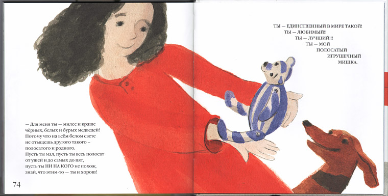 И вот что важно: быть собой не значит быть тем, кого любят. Даже любящий не в силах вернуть тебе – тебя, но это решение не для маленького ребенка, которому адресован «Полосатый». Малыш находит себя в объятиях мамы, значимого взрослого (на обложке девочка такая большая! Просто огромная!).